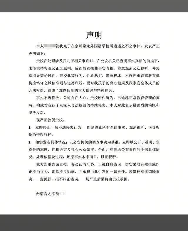 近日,在社交平台上,泉州聚龙外国语学校一位四年级学生家长投诉,班主任赵某要求其他同学掌掴他的儿子。此外,2024年生活老师曾拍摄他儿子裸照传给班主任,班主任随后对他的儿子进行言语侮辱。