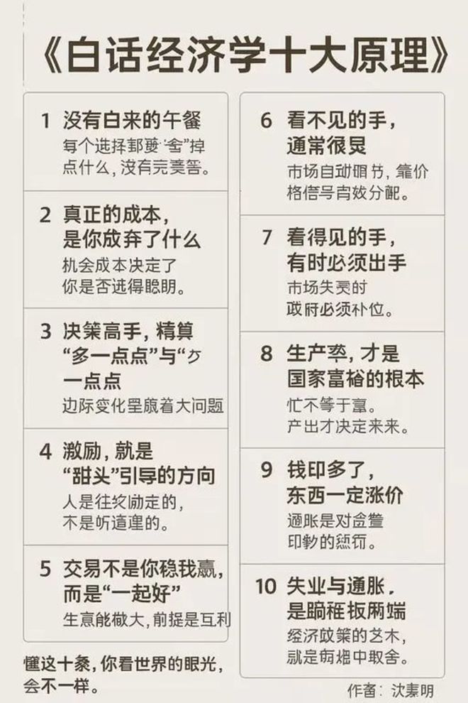 下次你再看到物价波动、政策调整、公司裁员,不妨试着用这十条“白话经济学”来想一想,或许你看到的就不是混乱,而是规则。