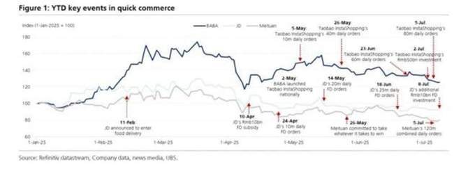 即时零售领域的年初至今(YTD)关键事件,数据来源:UBS