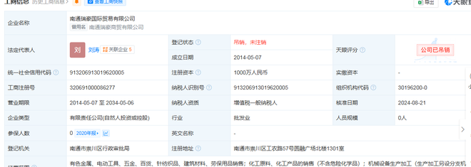 另外,上述提及的南通瑞豪,天眼查APP显示,该公司已于2024年8月21日被吊销。此前有媒体前往南通瑞豪注册地址,但该地址并无办公迹象。