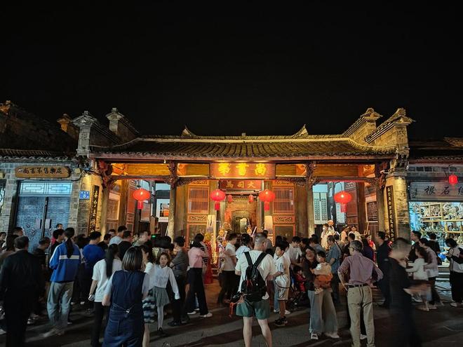 夜晚时分,伍华晖时常坐在古城院子里和朋友品茶。夜幕下的泰宁古城更显魅力——尚书巷“晚茶一条街”灯火通明,擂茶馆内茶香伴着山歌飘荡,城隍庙戏台前傩舞、桥灯轮番上演。