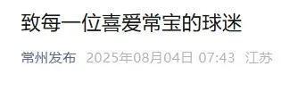 “常州发布”微信公众号8月4日发文: