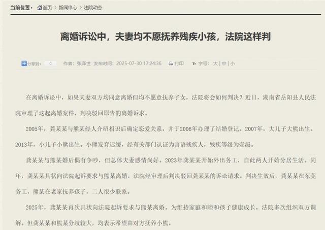 湖南岳阳一对父母离婚均希望对方抚养残疾儿,法院判决:不准离