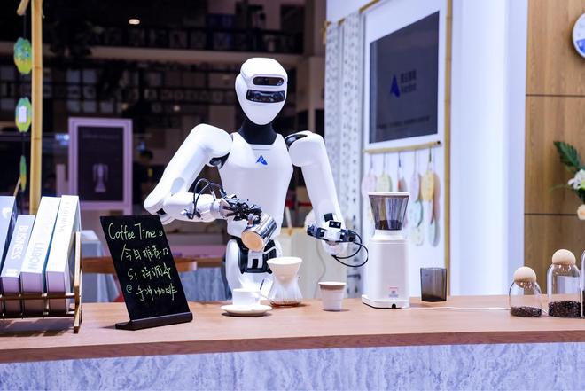 午后,S1无缝切换至商业服务模式,在模拟的精品咖啡馆中,创新的绳驱传动设计使其能以毫米级轨迹精度完成研磨、过滤、冲泡全套流程。