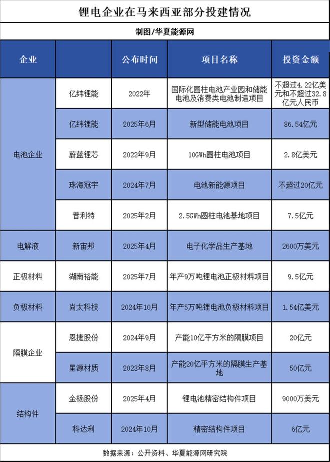 这些企业不仅覆盖正极、负极、隔膜、电解液四大主材,还包括精密结构件、设备等环节,甚至电芯、电池、电动汽车等企业也将马来西亚视为“出海第一站”。