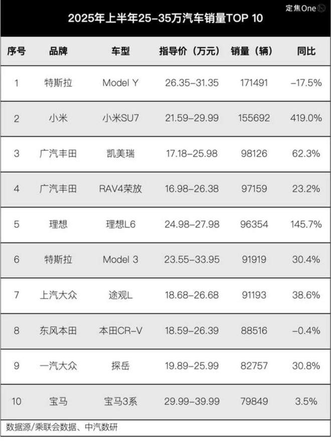 有意思的是,当我们把2025年上半年的销量数据按价格带分析时,会发现各个区间呈现出不同的竞争逻辑和发展趋势。