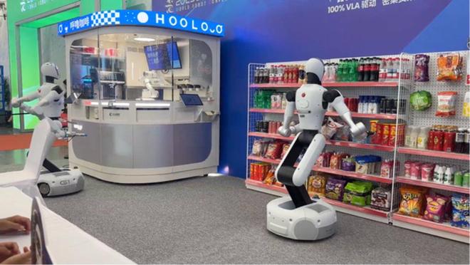 拿银河通用的Galbot为例,在北京海淀中关村的线下门店,它不用人遥操作,便可自主完成购买接待、点单支付、商品拿取、当面交付、多语音交互引客等全流程。在面对300+冷藏/热饮不同形态的商品时,也能准确抓取且做到不碰倒其他货品。