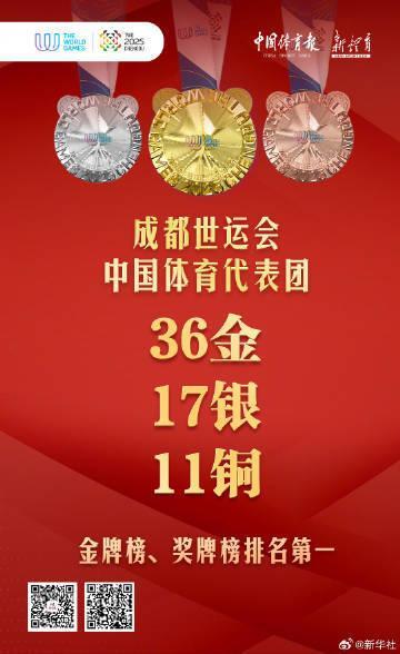 收官!成都世运会中国36金17银11铜,中国体育代表团位居金牌、奖牌榜首位!为运动员们点赞!
