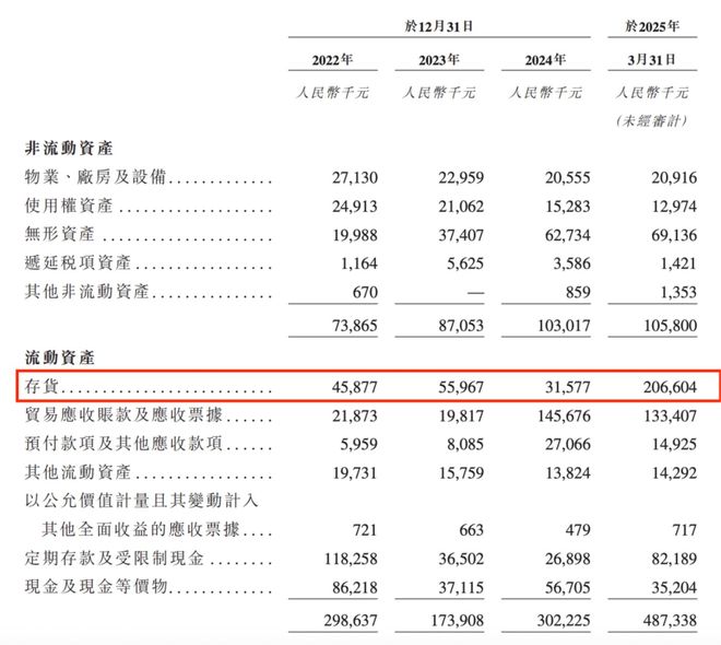 而且该公司的存货在近期有骤增的情况。报告期内其存货分别为4590万元、5600万元、3160万元及2.07亿元。2025年一季度,该公司的存货较2024年末猛增了约1.75亿元,增幅约554%。