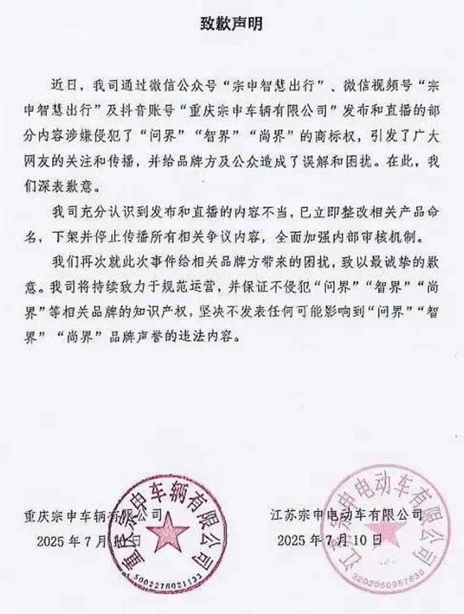 不仅仅是韩路,更多的路人网友“骂”声不断。舆情发酵仅24小时,宗申动力便发布致歉声明。公告承认名称“涉嫌侵犯商标权”,所有相关宣传物料连夜下架,并停止传播相关争议内容。