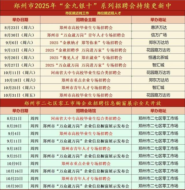 职等你来!本周郑州两场招聘会,附近期招聘表→
