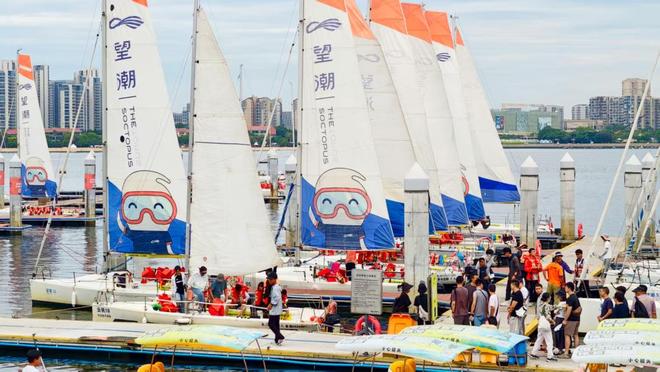 8月20日,游客乘着一艘艘帆船从厦门五缘湾出海。 澎湃新闻记者 王岱玉 图