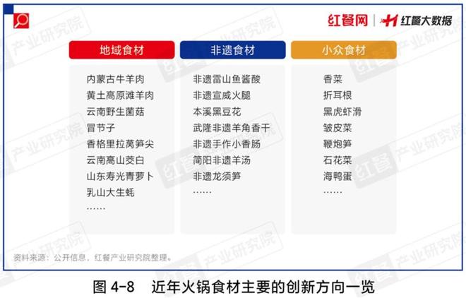 近年来,火锅市场热点层出不穷。一方面,火锅品牌快速跟进上新;另一方面,火锅供应链企业也顺应市场的变化进行快速迭代。例如,火锅底料供应商迅速研制并推出贵州酸汤火锅等热门锅底,食材供应链企业开拓了内蒙古牛羊肉、山野食材、非遗食材等,为火锅品牌的创新提供了强有力的支持。