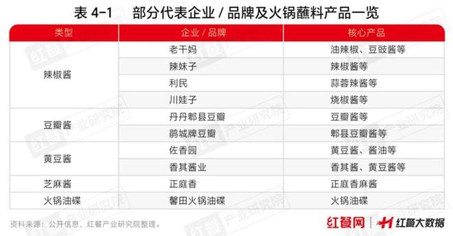 在蘸料方面,一批深耕细分领域的蘸料供应链企业快速发展,如主打豆瓣酱的丹丹郫县豆瓣和鹃城牌豆瓣,主打黄豆酱的佐香园和香其酱业,主打芝麻酱的正庭香,主打火锅油碟的馨田火锅油碟,这些企业的产品正逐步占据火锅门店的小料台。