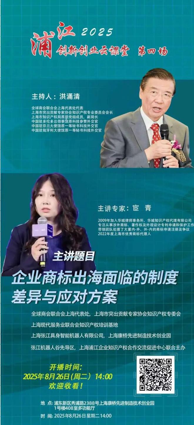 主办:全球商会联合会上海代表处、上海市突出贡献专家协会知识产权专委会、上海现代服务业联合会知识产权培训基地、上海张江具身智能机器人有限公司、上海康桥先进制造技术创业园、张江机器人谷先导区、上海浦江企业知识产权合作交流促进中心