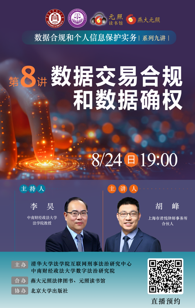 主讲人:李昊(中南财经政法大学法学院教授、博士生导师,数字法治研究院执行院长)、胡峰(上海市君悦律师事务所合伙人)