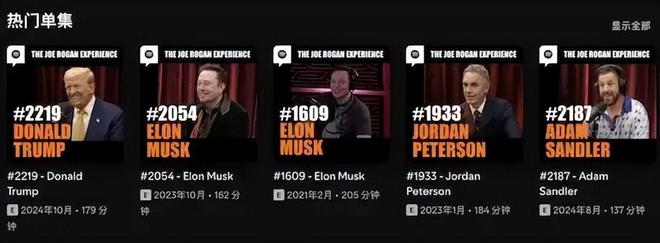 Joe Rogan视频播客:对话特朗普、马斯克等名人
