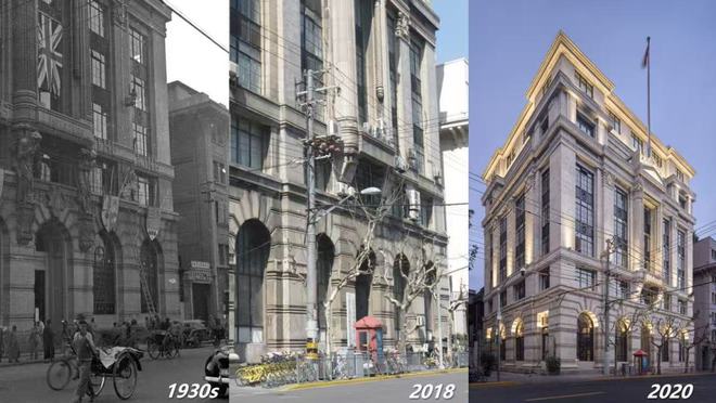卜内门大楼1930年代老照片、2018年修缮前、2020年修缮后对比。图片来源:百联资控