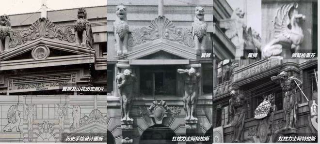 在上海,立面雕塑修复在上世纪已有案例。1924年建成的上海邮政总局大楼是全国重点文物保护单位,大楼塔楼两旁基座上原有两组雕塑群像:南面一组三人,居中者是希腊神话中的商神,亦称通信之神赫尔墨斯,左右为爱神厄洛斯和阿佛洛狄忒,象征邮政充当公众的信使;北面一组三人分别手持交通工具和通讯电缆模型,象征交通和通信事业。群雕原作被毁之前,曾由一位美术学校的学生用石膏偷翻了模子,后在1999年邮政总局大楼翻修过程中,根据这对石膏模子,重新铸造成和原件一样的复制品,也就是今天依旧设立在塔楼两侧的铜像。