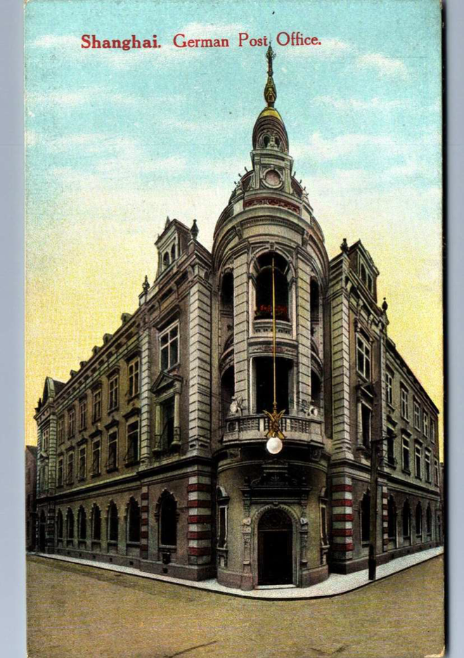 德国书信馆大楼在1905年竣工和投入使用,由德商倍高洋行设计,晚期文艺复兴风格,带有德国巴洛克装饰特征,其建筑立面富于巴洛克装饰,门窗洞口、山花等皆饰以大量线脚、花饰,主入口两侧还饰以了人物雕塑。