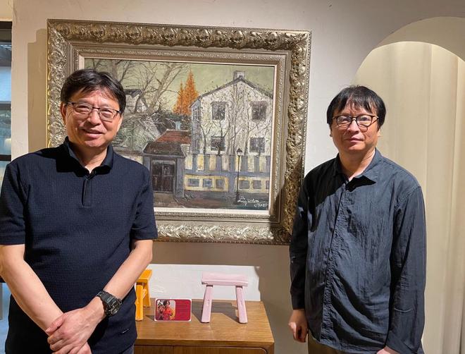 刘伟冬(左)与李安源在展览现场
