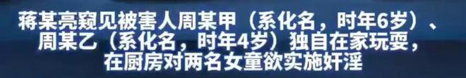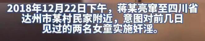 蒋某亮并非初犯,此前他曾因抢夺罪被判处有期徒刑6个月,2017年8月刑满释放。然而,刑罚的惩戒并未让他收敛恶行,2018年12月22日下午,蒋某亮将目标锁定在四川省达州市某村民家的两名幼童身上——他此前曾见过这两个孩子,当日窥见时年6岁的周某甲(化名)与4岁的周某乙(化名)独自在家中玩耍,便从厨房门潜入屋内,意图在厨房对两名女童实施奸淫。