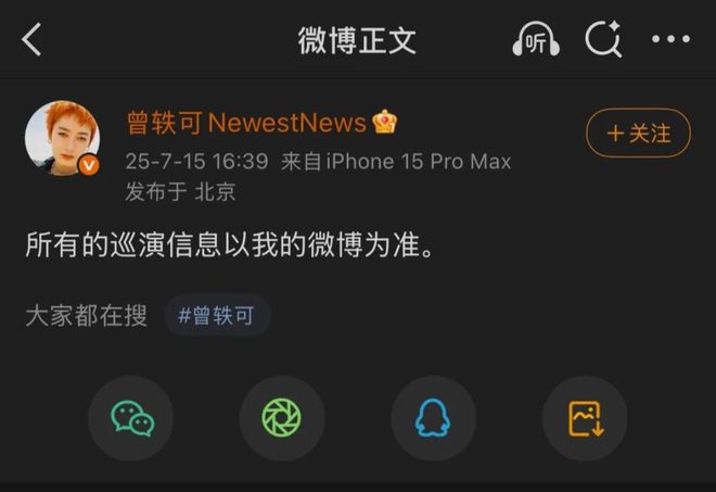 有一个细节值得关注,在7月15日主办方微博官宣苏州站的巡演信息后,不到两小时,曾轶可也发了一条微博:“所有巡演信息以我微博为准”,这也反映出艺人与主办方之间在演出信息发布及决策上的沟通不畅,或许早已为后续合作埋下隐患。