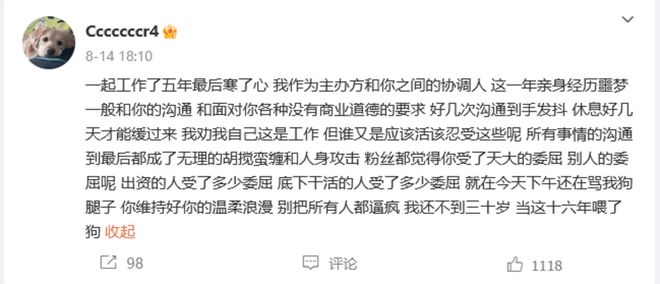 而之所以演变成明面上的对线,更大的可能是艺人与主办方在私下已经谈崩,矛盾积压已久,取消演出只是导火索。