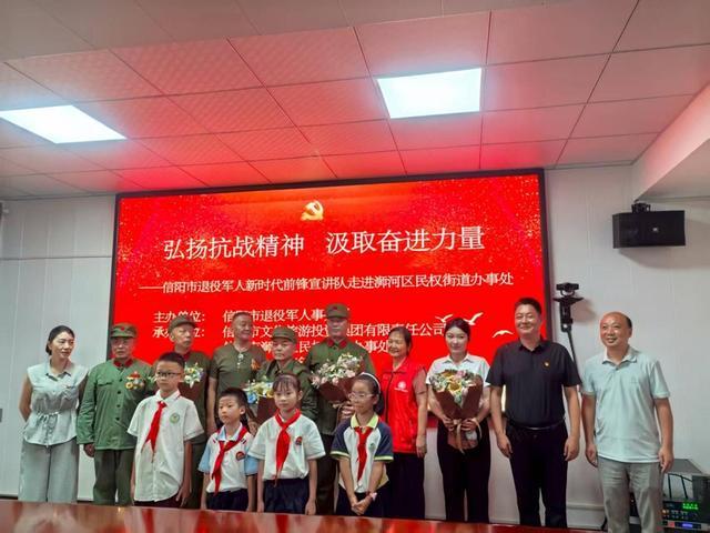 为深切缅怀革命先烈的丰功伟绩,传承和弘扬伟大的抗战精神,进一步强化党员干部的理想信念教育,8月22日下午,信阳市浉河区民权街道联合信阳市文化旅游投资集团、信阳市退役军人事务局共同举办了“弘扬抗战精神 汲取奋进力量”主题党日宣讲活动。