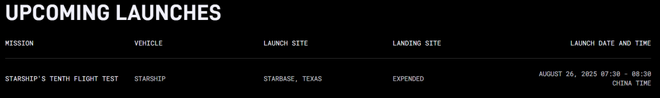 澎湃新闻(www.thepaper.cn)查阅SpaceX官网了解到,星舰第十次飞行测试预计于美国中部时间25日下午6时30分至7时30分(北京时间26日7时30分至8时30分)在得克萨斯的星舰基地进行。即将进行的第十次试飞将继续扩展超重型火箭助推器(“星舰”的第一级推进器)的运行范围,并计划进行多次着陆燃烧测试。此次飞行还将进行与以往任务类似的目标,如“星舰”的首次有效载荷部署,以及开展多项再入大气层试验——这些试验旨在使上级火箭(upper stage)能够返回发射场,并为后续的“捕获”(用一对绰号为“筷子”的巨型机械臂“捕获”第一级超重型火箭助推器)操作奠定基础。