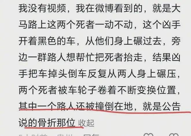 事件发酵的过程中,社交平台上满是对这场悲剧的讨论,理性的声音在评论区逐渐汇聚。有网友结合视频细节与目击者的描述分析:“从整个过程来看,这根本不是意外,而是故意伤人。一开始撞倒两人后,司机还下车查看过情况,之后却直接开车撞向路人,又反复回去碾压地上的人,连上前帮忙的热心人都没放过,这明显是有预谋的,手段太残忍了。”