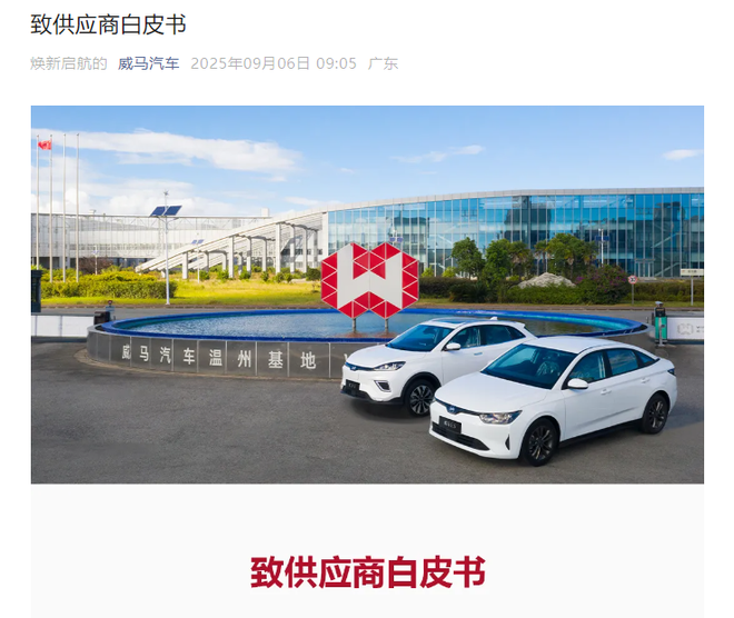 红星资本局9月6日消息 今日,沉寂两年半的威马汽车科技集团有限公司(以下简称“威马汽车”),通过公众号发布《致供应商白皮书》(以下简称《白皮书》),说明了公司的重整情况、法院对历史债务的裁决,以及“新威马”未来6年的发展规划,以吸引供应商加入。