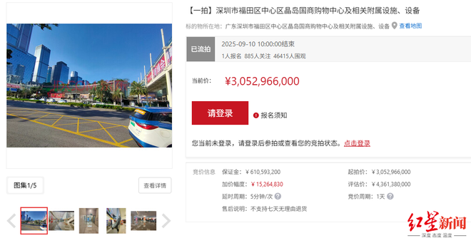 红星资本局9月10日消息,今日上午,吸引了超过4.6万人围观的深圳皇庭广场公开拍卖最终流拍。