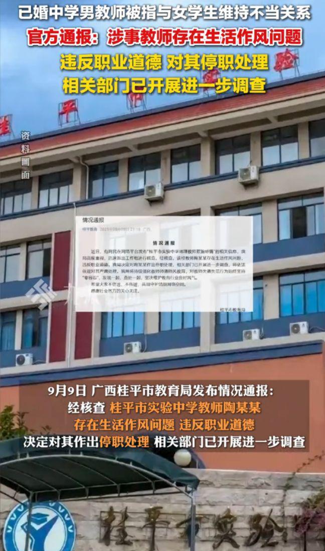 当“教师”这个本应承载信任与育人责任的身份,与“婚内出轨未成年学生”的丑闻绑定,带来的不仅是舆论哗然,更叩击着教育行业的师德底线——近日,广西桂平市实验中学一名陶姓地理教师的争议事件,从最初的网传消息发酵成主流媒体聚焦的热点,其背后暴露的问题,值得所有人警惕。