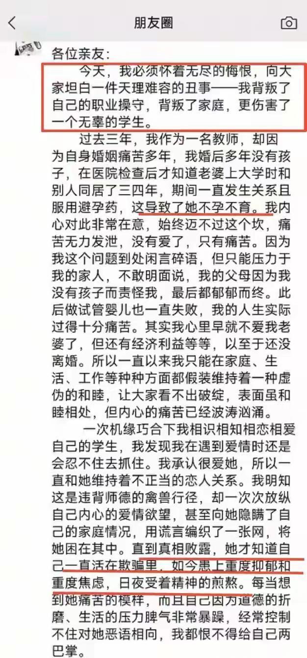 在自白书中,陶某某提到自己与妻子婚姻多年未育,期间尝试过多种办法均无效果。在他的追问下,妻子坦白大学期间曾有一段长达数年的同居恋情,因当时生活不节制,最终导致不孕。得知真相后,陶某某内心崩溃,却选择表面装作不在意,实则对妻子产生了深深的怨怼与隔阂。也正是在这种扭曲的心理状态下,他开始有意接近自己的学生,并与对方发展、维持了一段不正常的师生恋人关系。