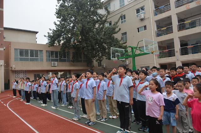 郑州市金水区工人第一新村小学举行“九·一八”主题升旗仪式