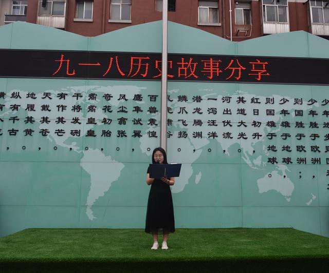 教师代表马睿远以《铭记历史,珍惜今天》为主题进行发言。她通过生动的历史故事,向同学们讲述了“九·一八”事变的经过和中国人民英勇抗争的事迹,号召大家从身边小事做起,爱国爱校、勤奋学习,用实际行动传承红色基因。