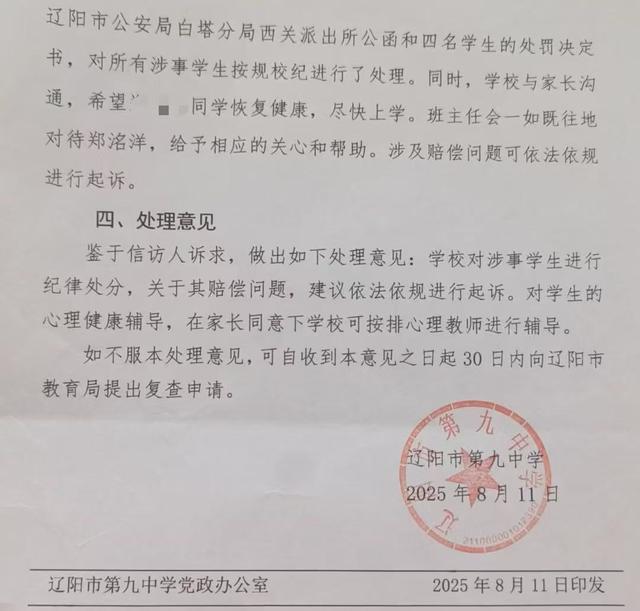 关于校园欺凌防治程序是否启动等问题,辽阳市教育局相关科室负责人史某说,“这件事正在处理中,我不方便回答。”随即挂断电话。
