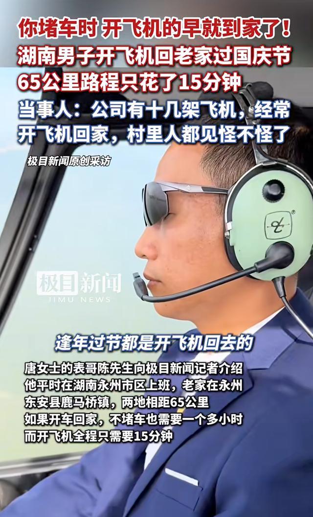 湖南男子开飞机回老家过国庆:65公里开车需一个多小时,飞机只要15分钟