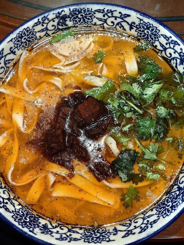 南阳板面是当地独具特色的面食,面条劲道,汤料浓郁。以牛肉或羊肉为卤,配以青菜和秘制调料,咸香适口,是南阳人秋季最爱的暖心美食。