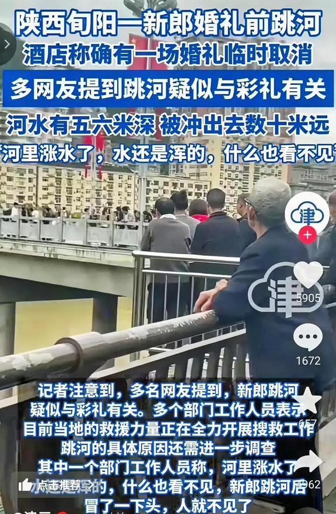 陕西一新郎婚礼前跳河,疑似其母亲也要跳河被阻止,家庭状况被曝