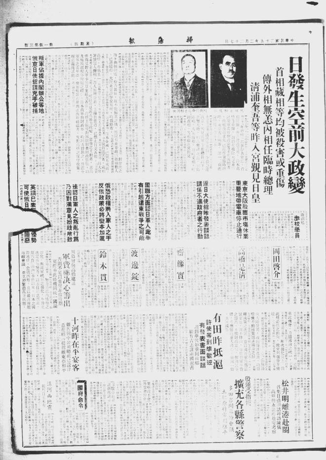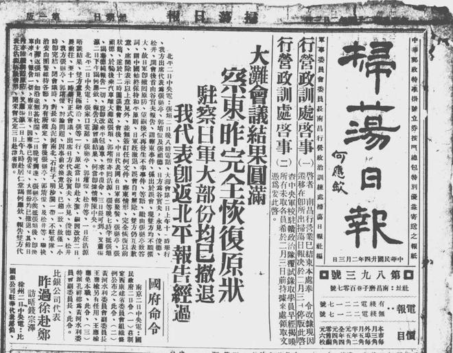 1936年春,日本发生“二二六”政变,少壮派军人残杀内阁大臣。事变发生后仅三小时,《扫荡报》通过自己的渠道获得消息,立即刊发。