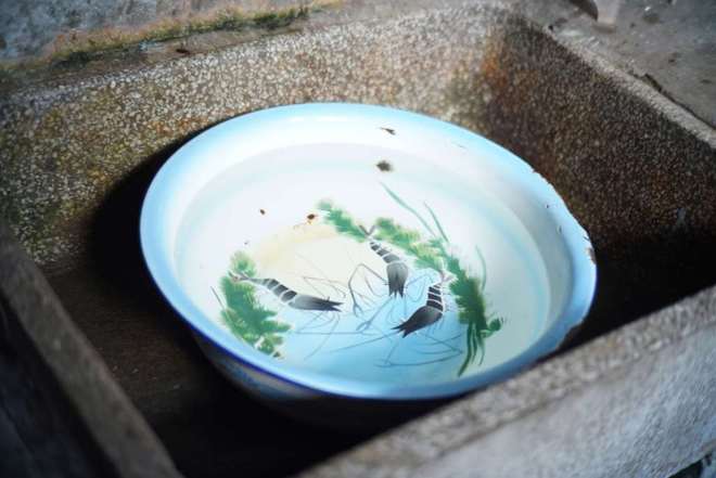 三人对着大屏幕上的幻灯片,按照自己的理解,依次聊到每张照片,比如,在谈到一张在晒台上的照片(下图1)时,徐昕称他在这个场景前通常镜头会朝着晒台外的高楼大厦看去,而陆元敏则被一株红花所吸引,而这是徐昕去过很多次没发现过的视角。又比如,在一张光彩耀日的照片(下图2)中,姜纬认为从黑暗中伸出的手让画面更生动,而陆元敏却说,自己看中的是画面中心的芒果。透过一张照片里的清水,几只虾的图画装点着搪瓷面盆;另一张照片里,孩子趴在玻璃上看着人来人往。姜纬和徐昕提到了陆元敏对于画面整体的把握和细节的关注。“人的神态和非常丰富的生活细节是陆元敏照片的魅力,也是上海这座城市平淡又典型的东西。”姜纬说。