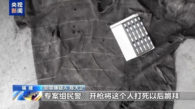 福建省泉州市公安局刑侦支队支队长 邱鑫:我们挖掘这副尸骨原始的惨状,可以想象出当时陈大卫的残暴程度。这具尸骨是跪姿头朝下,浑身都有铁链和粗绳捆绑,头盖骨上有7个弹孔,浑身从着装到骨骼上都有被开枪射击的痕迹。按照陈大卫的供述,是给民兵下令让他跪在坑里,打光所有的子弹以后,才对死者进行掩埋。