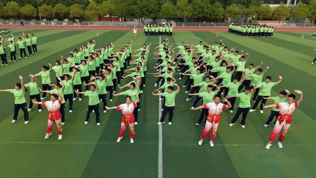 作为一所秉持“健康、快乐、成功”办学理念的九年一贯制学校,南阳市二十一学校始终将体育教育与文化传承深度融合,武术进校园的探索之路。学校建立健全校园武术工作机制,配备的专业武术教练,课程实施均达到省级试点学校评定标准。课堂上,武术成为特色体育课程的重要内容;课间操时,《少年强则国强》武术操展演气势如虹,24个班级方阵动作整齐划一、口号铿锵有力,尽显少年昂扬风采!